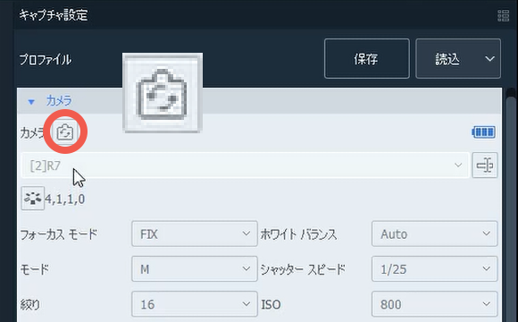 複数台カメラを接続している際、撮影画面のカメラ設定メニューより、すべてのカメラの設定を同期させることが可能です。