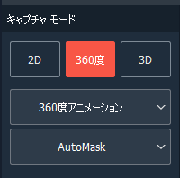 - 撮影画面から「360度」「360度アニメーション」モードを選択します