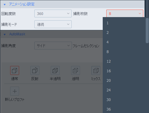 「360度アニメーション」モードでアニメーションを保存する場合、「HTML」もしくは「GIF」が基本的なフォーマットとなります