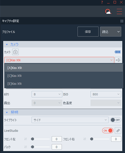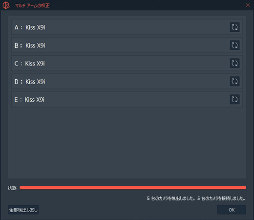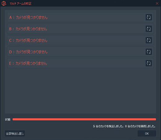 ソフトウェアの起動時に、カメラ認識(校正)ウィンドウが起動します。