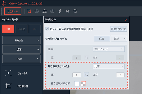 幅・高さの比率を縦長になりように数値を設定してくおくと、後の編集が行いやすいのでおすすめです。