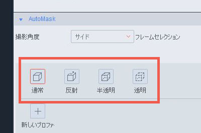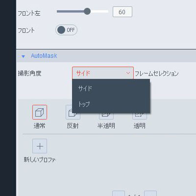 AutoMask設定の「撮影角度」より、カメラの角度(サイドもしくはトップ)を選択します