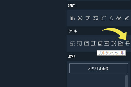 画面右の編集ツールで、ミラーになる画像の不透明度や実物との距離など調整できます