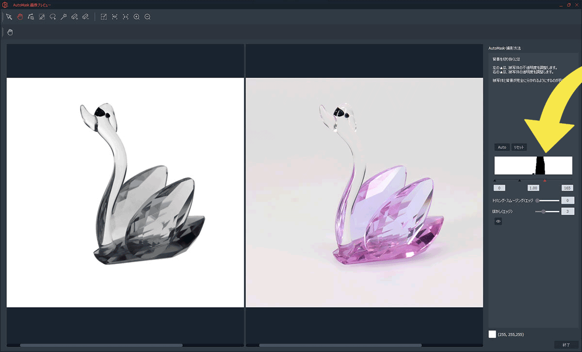- スライダーでAutoMaskの調整を行い、終了をクリックします。