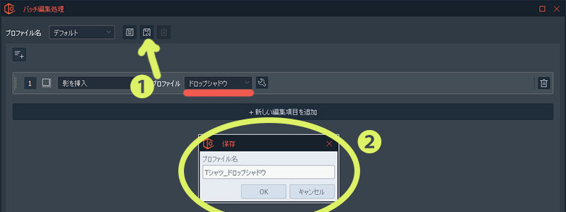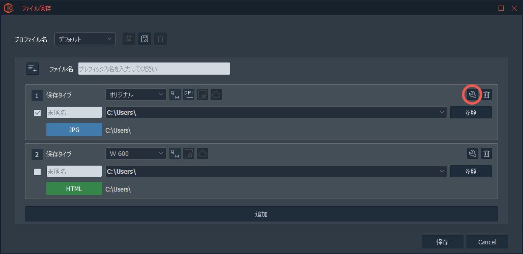 - 上で作ったプロファイルが選ばれていることを確認し、再度プロファイルを保存後、右上のXで保存画面に戻ります