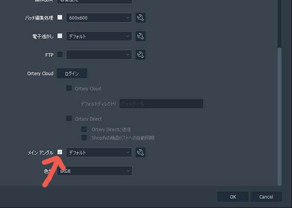 「メインアングル」欄にチェックを入れ、右下のOKボタンを押します。