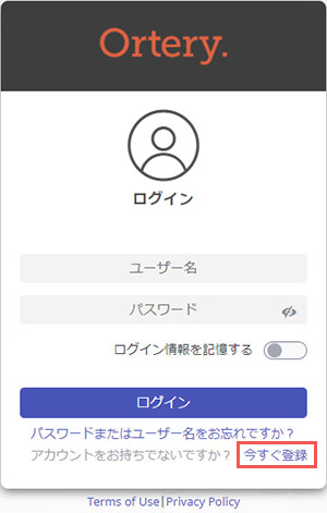 https://user.ortery.com/にアクセスし、「今すぐ登録」をクリックします