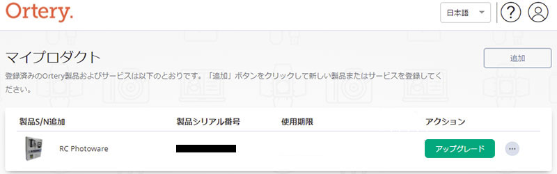 「アップグレード」からソフトウェアの更新ライセンスを購入できます。