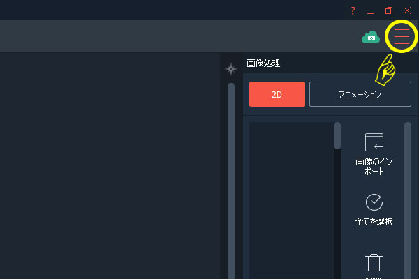 - 画面右上の設定ボタン(3本線アイコン)をクリックします