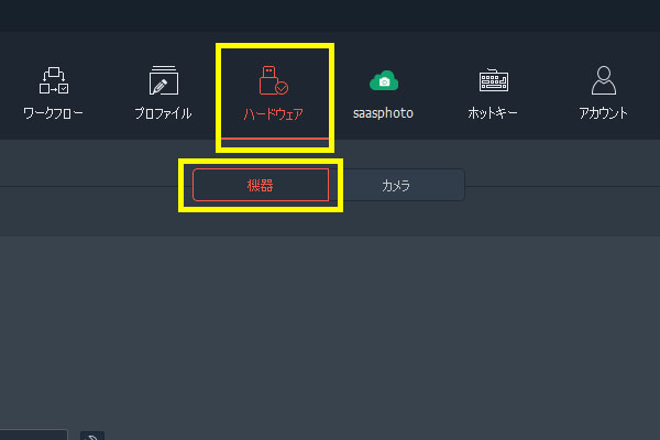 - 「ハードウェア」タブをクリックし、「機器」をクリックします