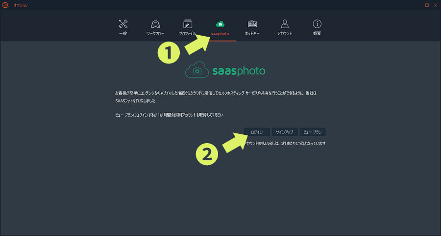 ソフトウェアからSaasphotoにログイン