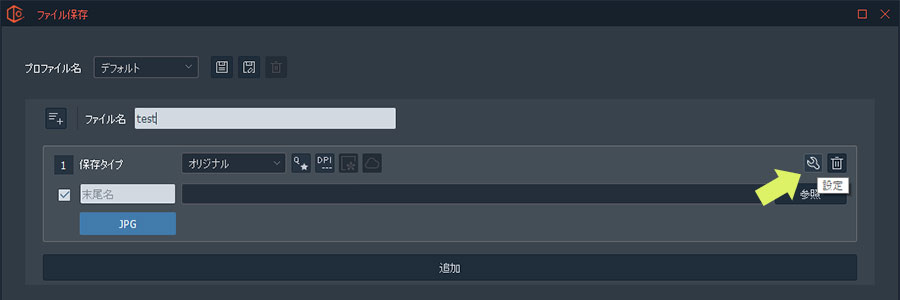 1. ファイル保存画面右の設定ボタンをクリックします