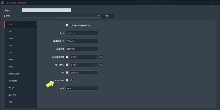 2. 設定項目内の「Saasphoto」にチェックを入れます