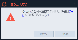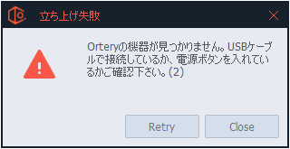 「Orteryの機材を認識できません」というメッセージが表示される