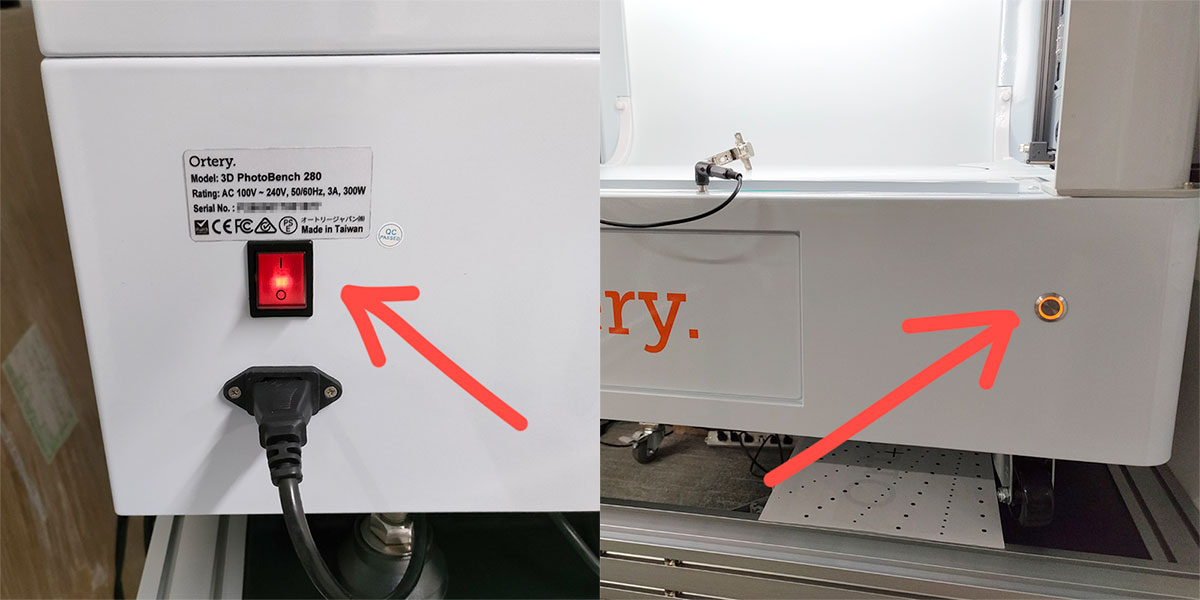 Ortery機材の電源がオンになっているか